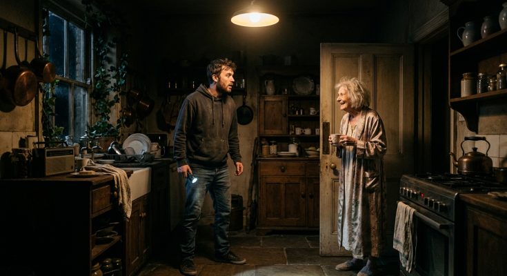 Leo froze, his heart slamming against his ribs. Standing in the doorway, wearing a faded silk robe and holding a half-empty mug of tea, was a frail woman with wispy white hair.